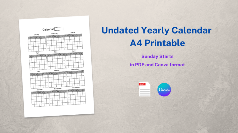 Undated Yearly Calendar Template for Canva (Sunday Starts)