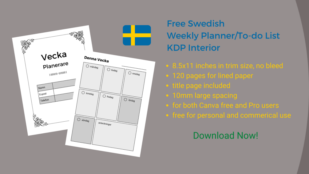 Free Swedish 8.5x11 inches Weekly Planner/To-Do List KDP Interior